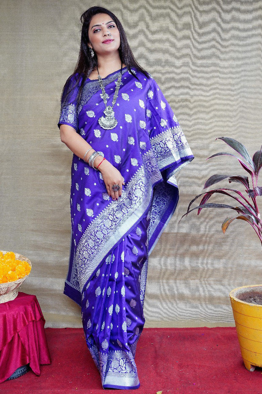 Prodigal Royal Blue Banarasi Silk Saree With Symmetrical Blouse Piece
