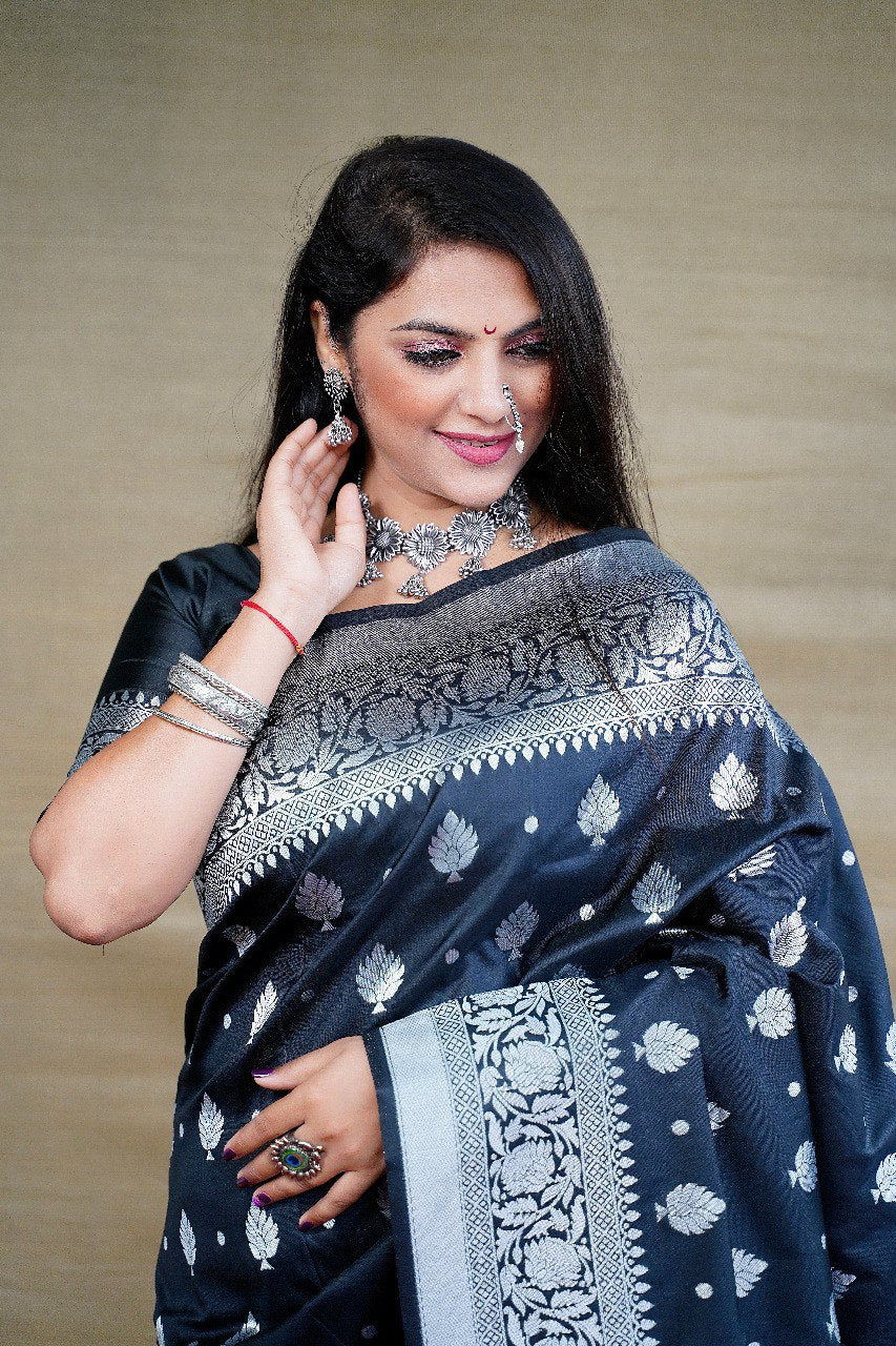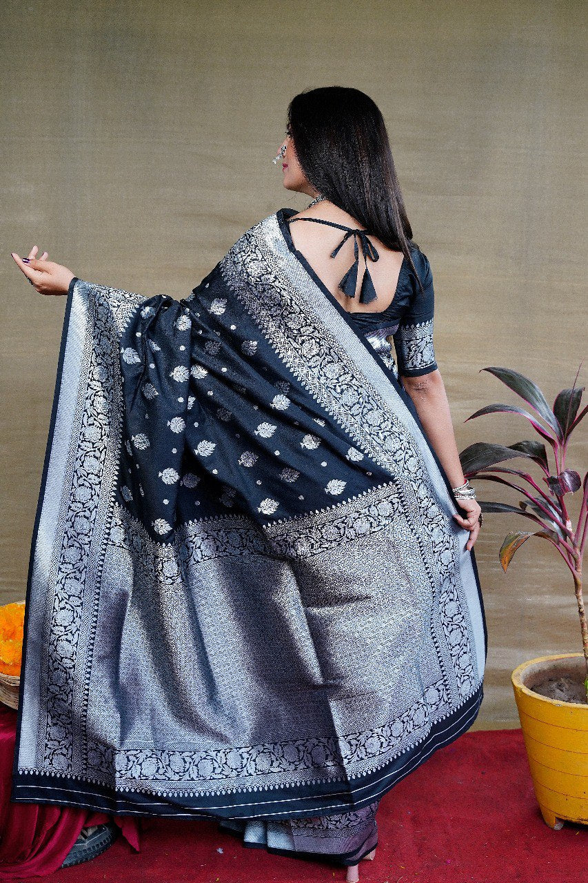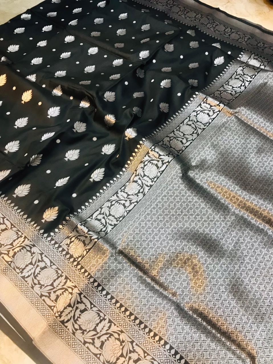 SAREE SPECIFICATIONS: Fabric: Banarasi Silk Colour: Black Work Type: Jacquard Weaving