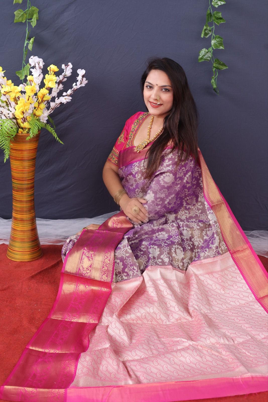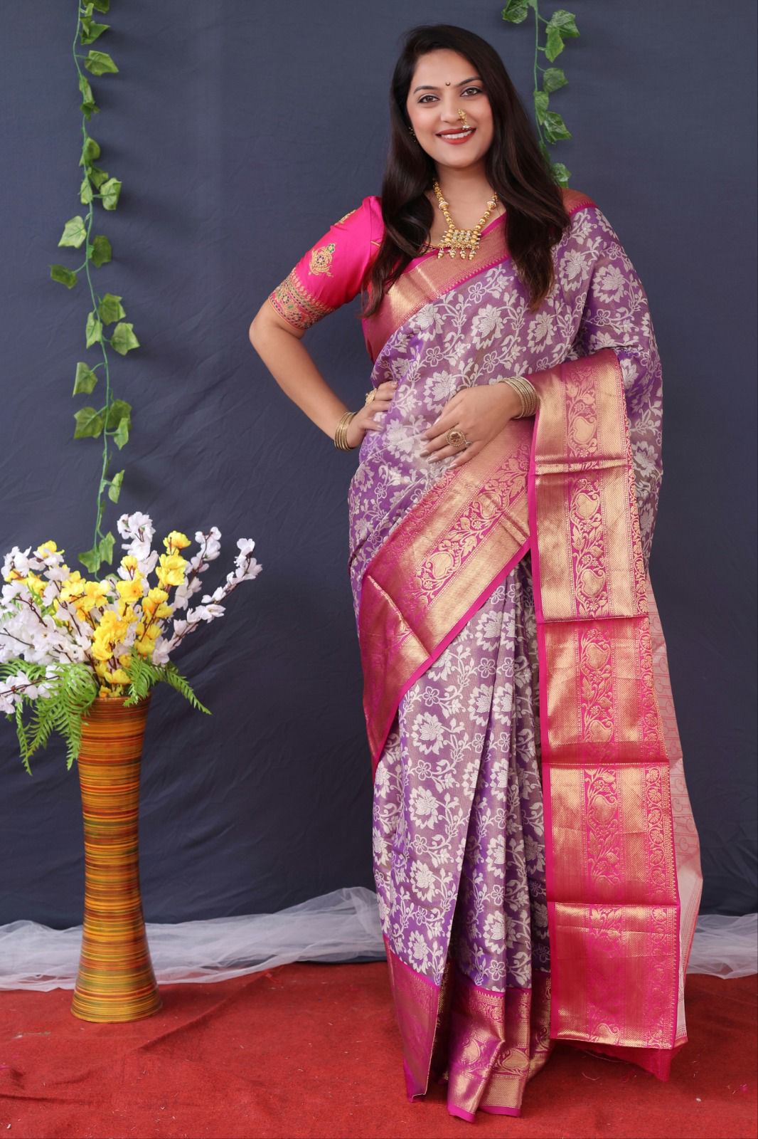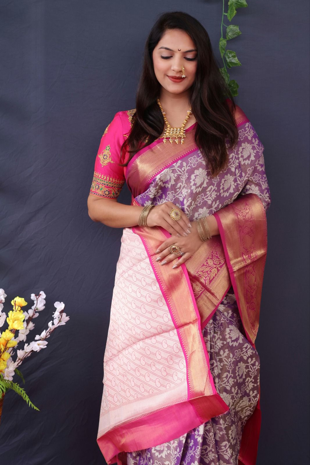 Profuse Purple Kanjivaram Silk With Magnificat Blouse Piece