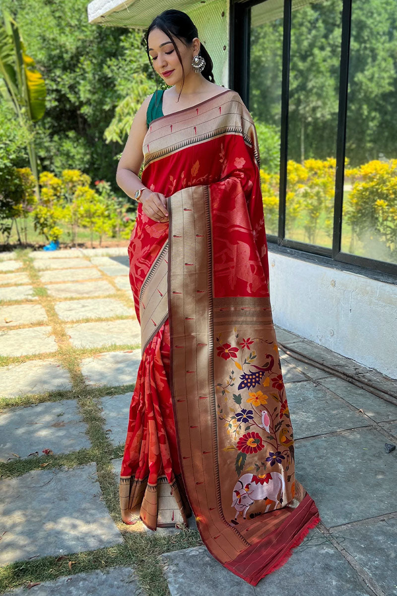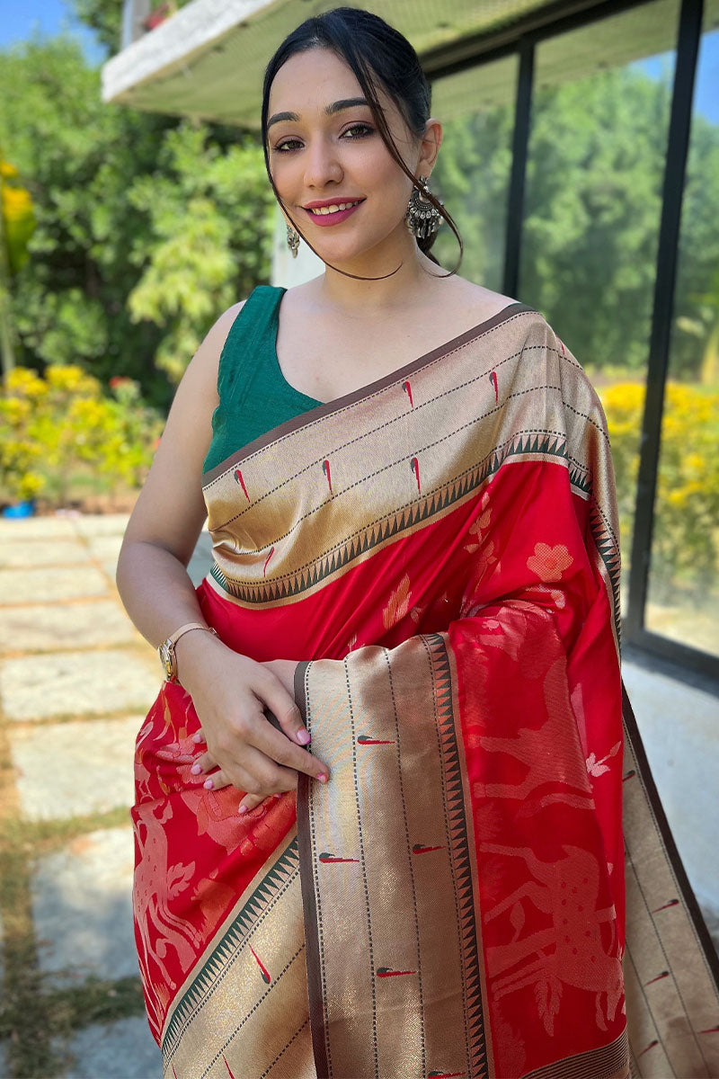 Prominent Red Paithani Silk Saree With Entrancing Blouse Piece