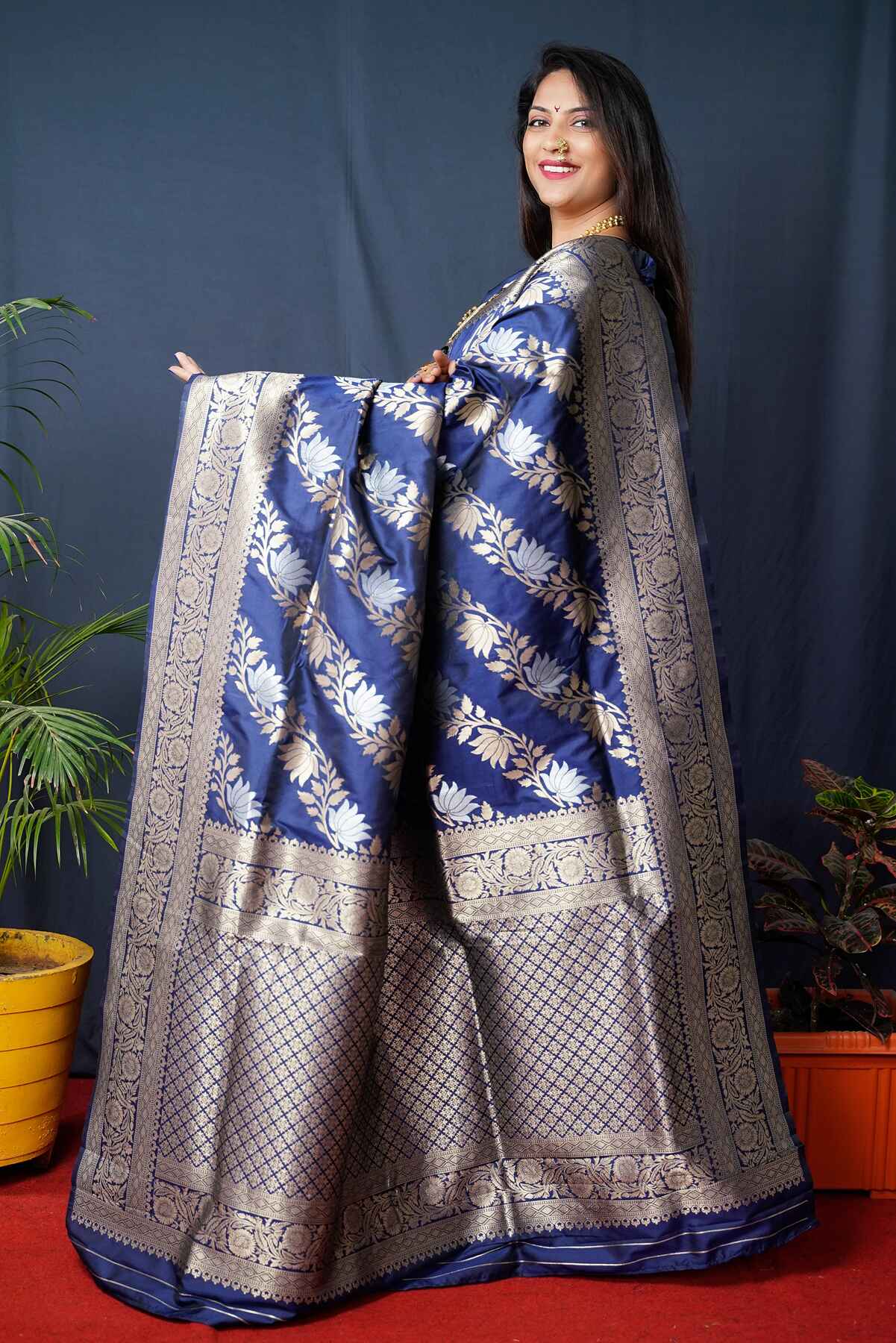 BLOUSE SPECIFICATION: Fabric: Kanjivaram Silk Colour: Navy Blue Work Type: Jacquard Weaving Stitching Type: Unstitched