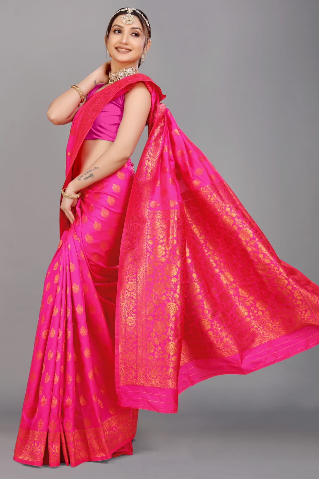 Quintessential Dark Pink Soft Banarasi Silk Saree With Nemesis Blouse Piece