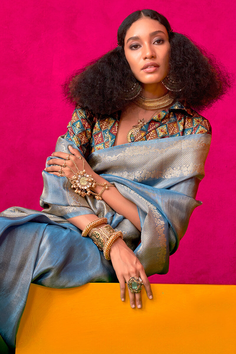 Indulge in sheer opulence with our Soft Banarasi Tissue Silk Saree. Handwoven to perfection, this saree boasts a light and breezy texture that drapes effortlessly on your silhouette. The rich Banarasi motifs and delicate zari work elevate its look, making it a coveted piece for special occasions. Embrace luxury with this masterfully crafted saree.