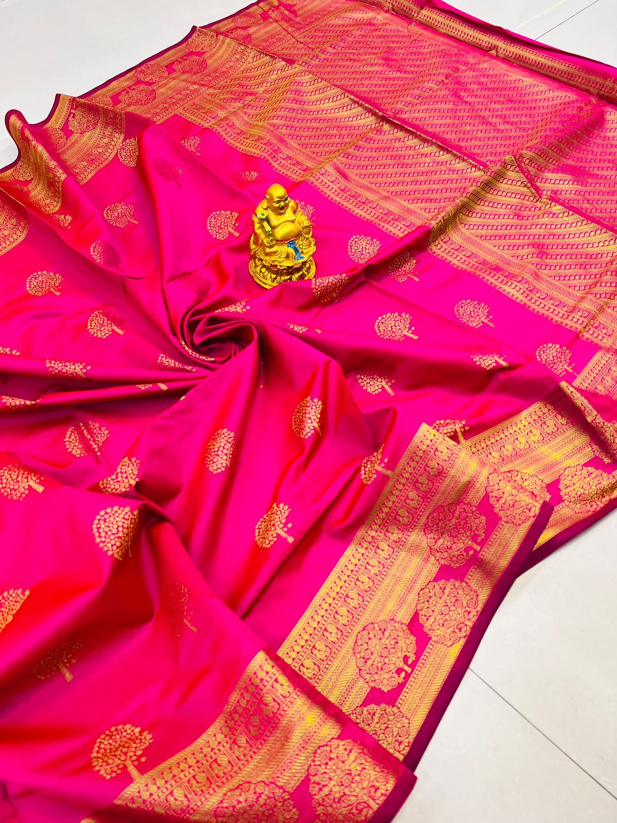 Refreshing Dark Pink Soft Banarasi Silk Saree With Supernal Blouse Piece