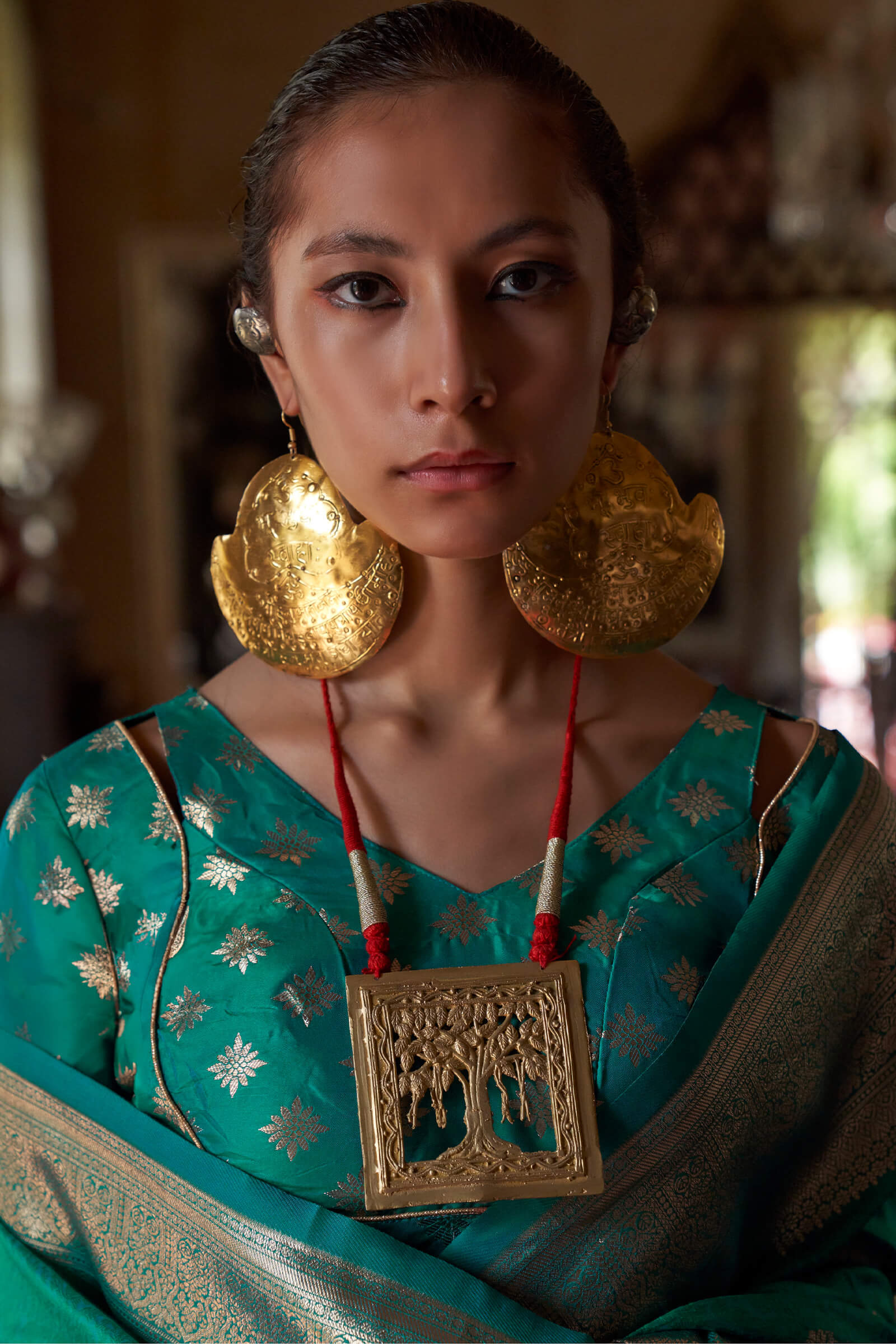 Scintillating Rama Soft Banarasi Silk Saree With Eloquence Blouse Piece