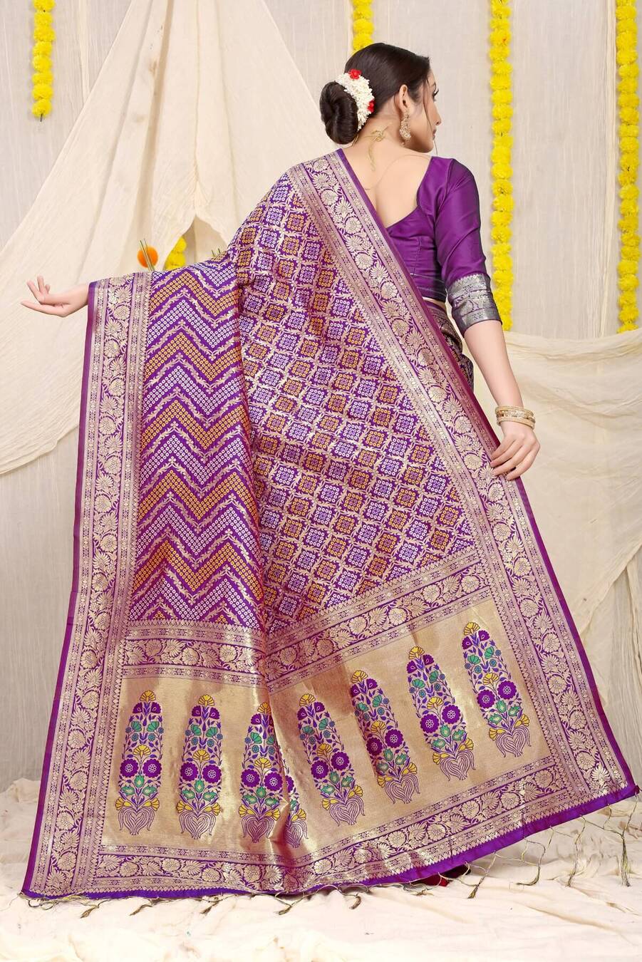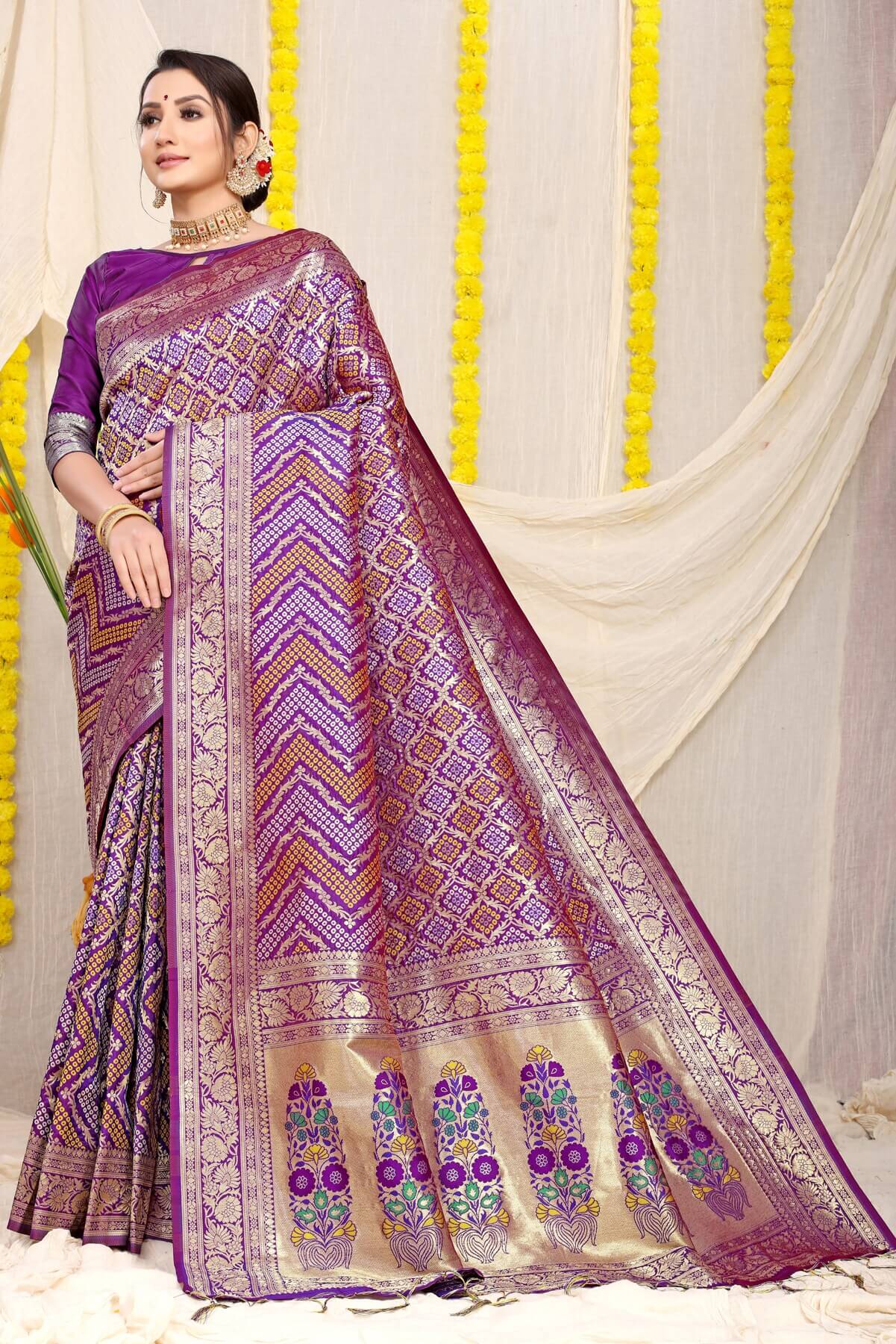 Choose this intriguing Daisy Purple Woven Soft Banarasi Silk Saree and strike the perfect note of sartorial symphony. these sarees are soaked in the charm of resplendent colors and fine silk fabric. A complimenting border and motif design make this saree a fascinating piece of art.