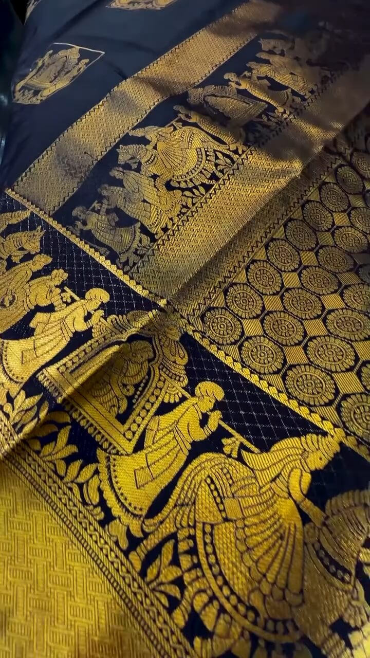 Elevate your ethnic wardrobe with our exquisite Navy Blue Soft Banarasi Silk Saree. Crafted with intricate details and elegant motifs, this saree exudes grace and sophistication. Paired with a stunning Petrichor Blouse Piece, this ensemble is the epitome of luxury and style.