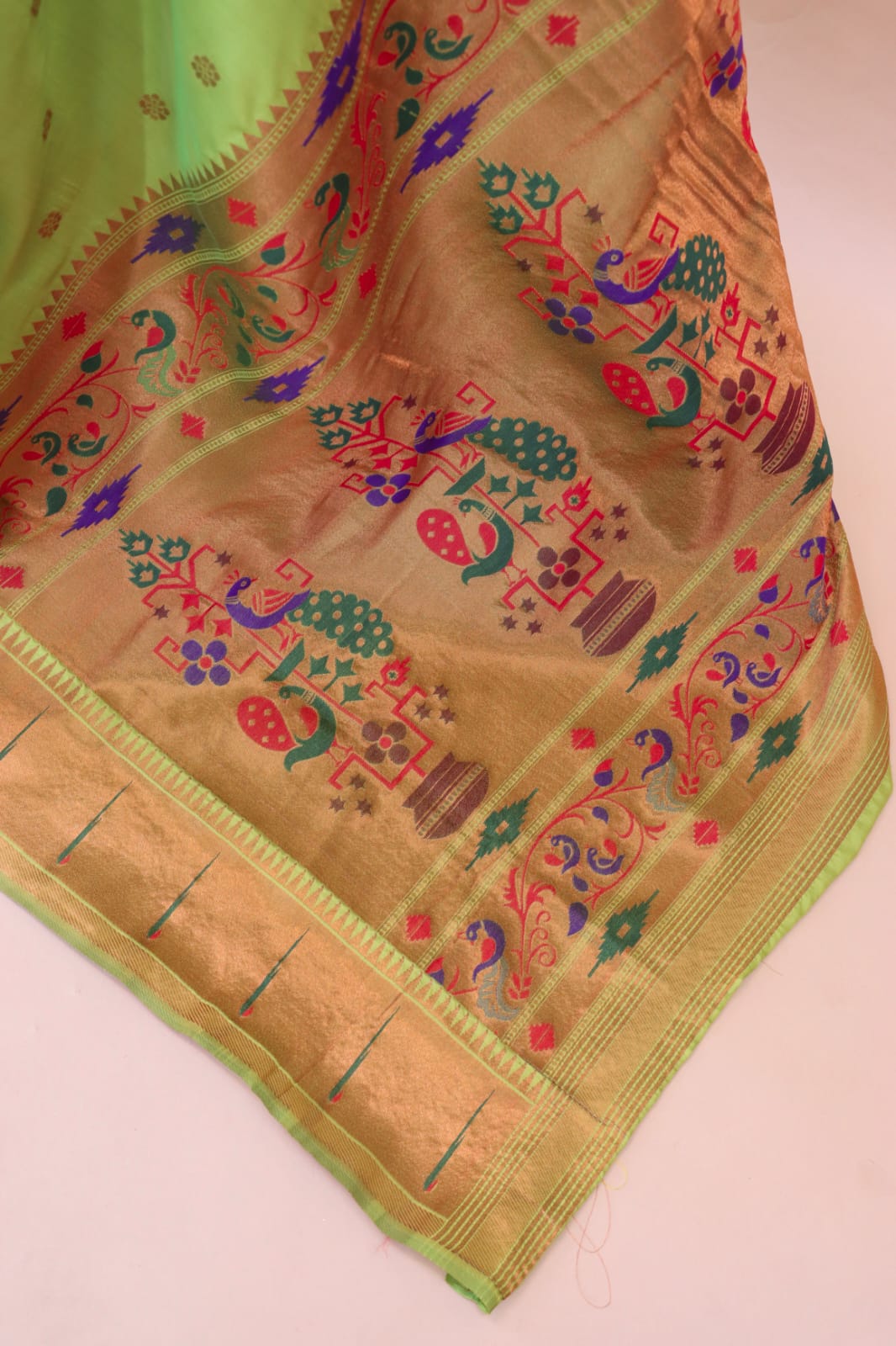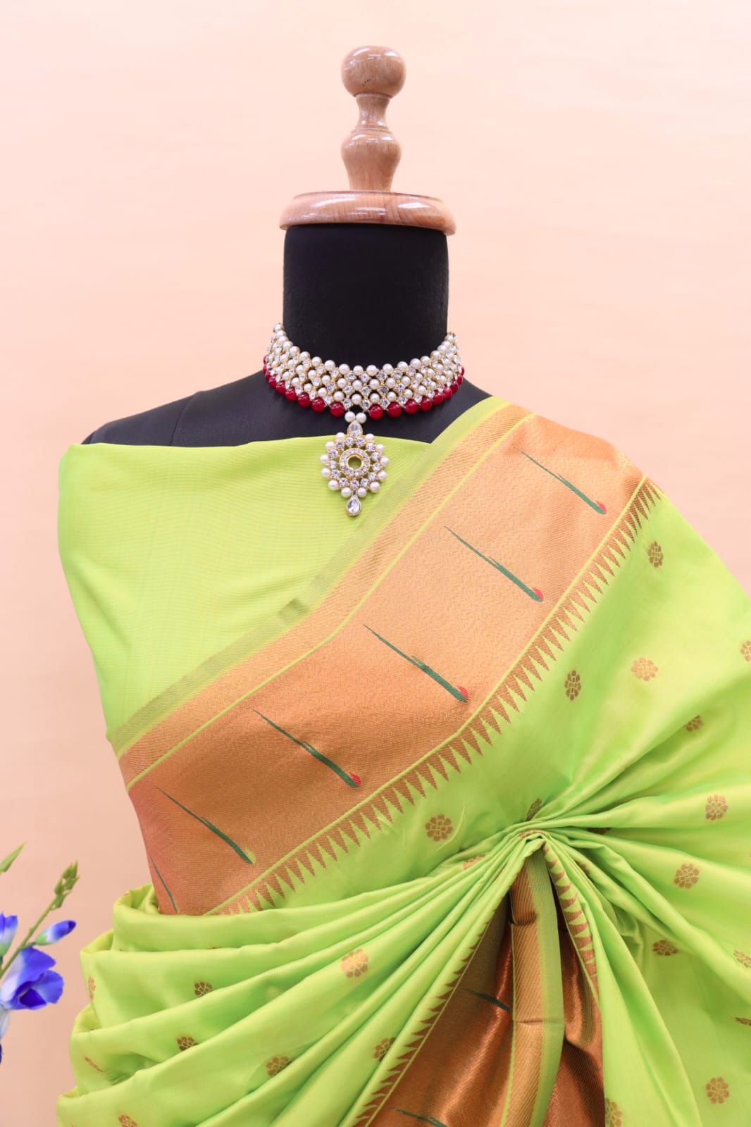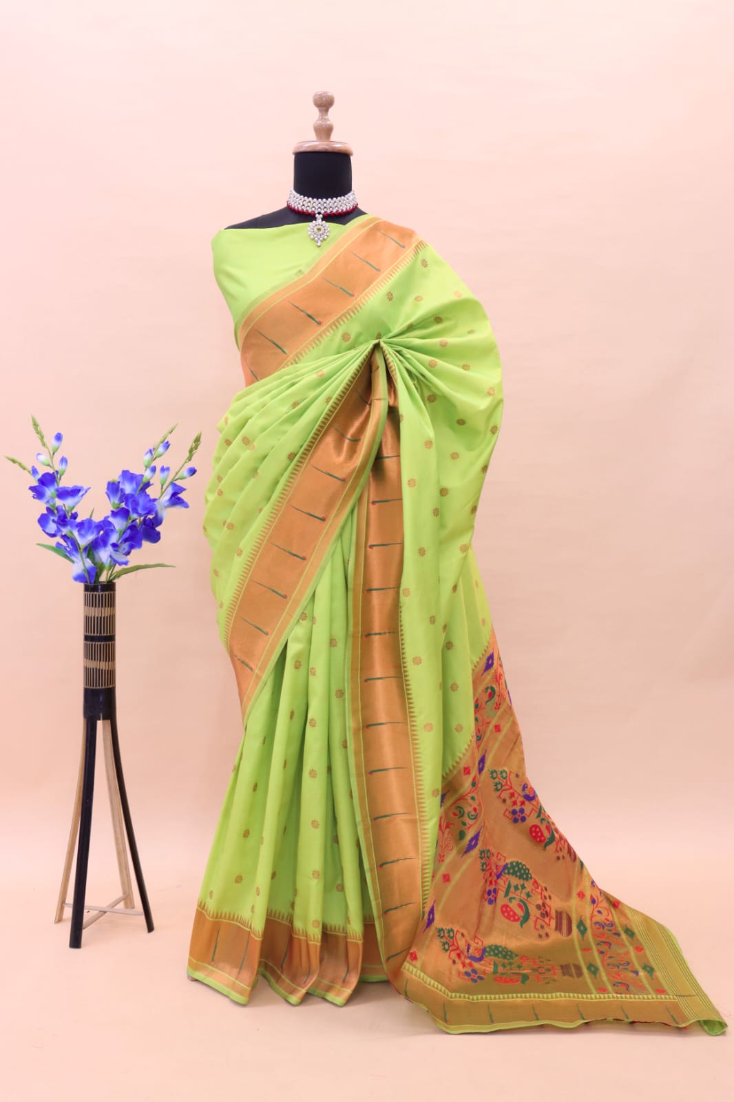 Skinny Parrot Paithani Silk Saree With Lovely Blouse Piece