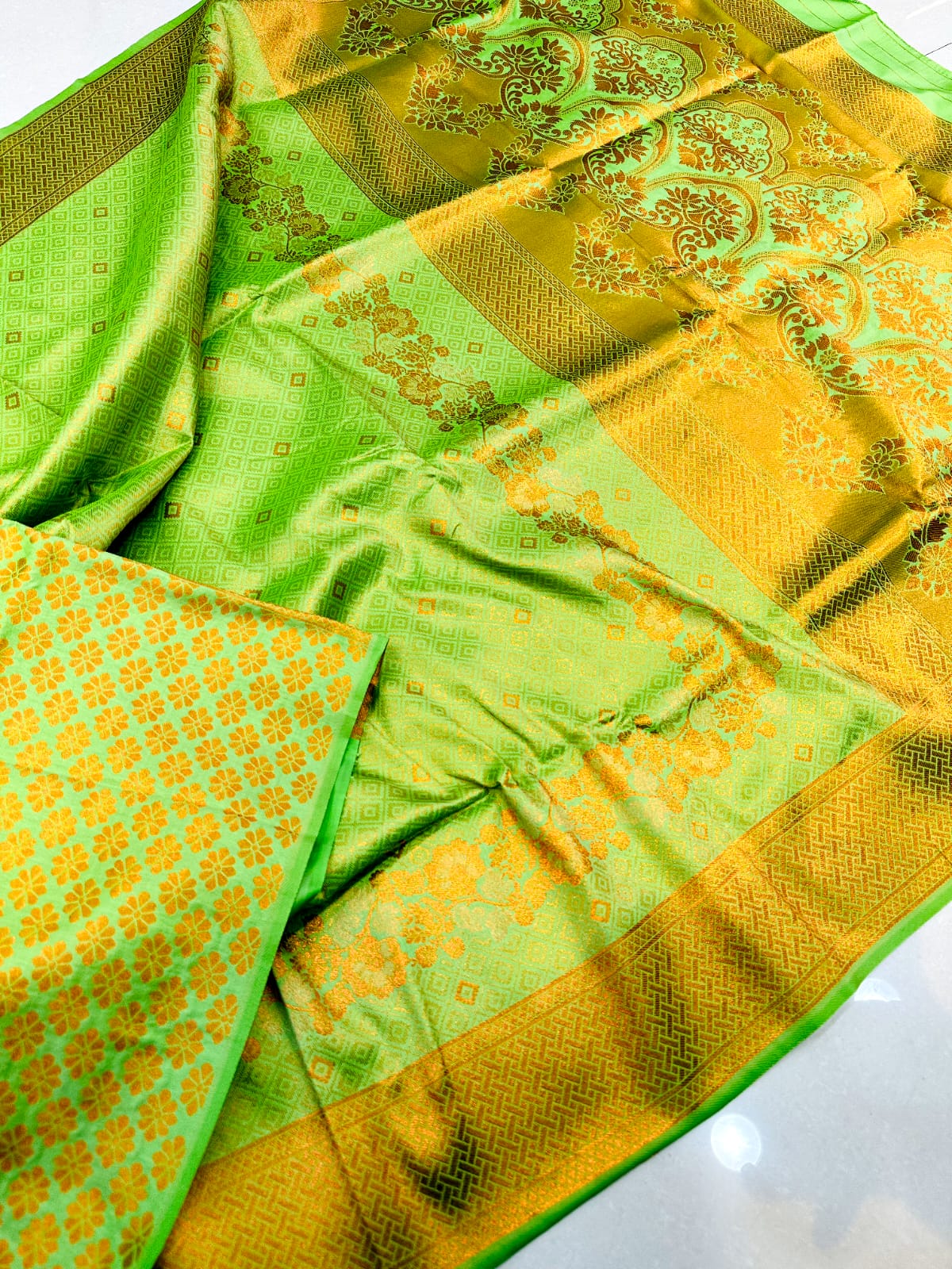 Increase quantity for Surpassing Pista Kanjivaram Silk with Rich Blue Blouse Piece