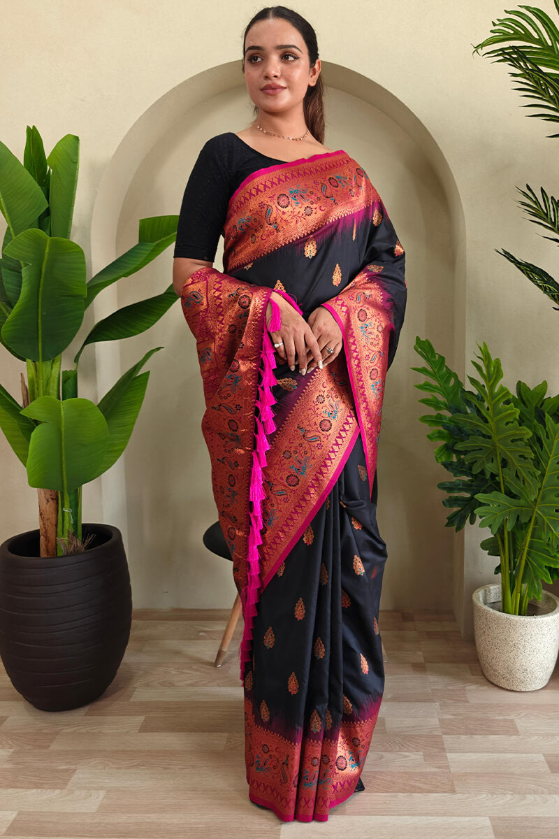 Elevate your ethnic look with the Soft Banarasi Silk Saree. The intricate weaving and soft texture of the silk fabric make this saree a must-have for every fashion enthusiast. Pair it with your favorite jewelry and accessories to complete your traditional ensemble.