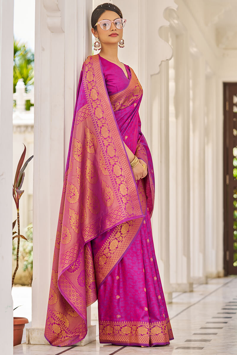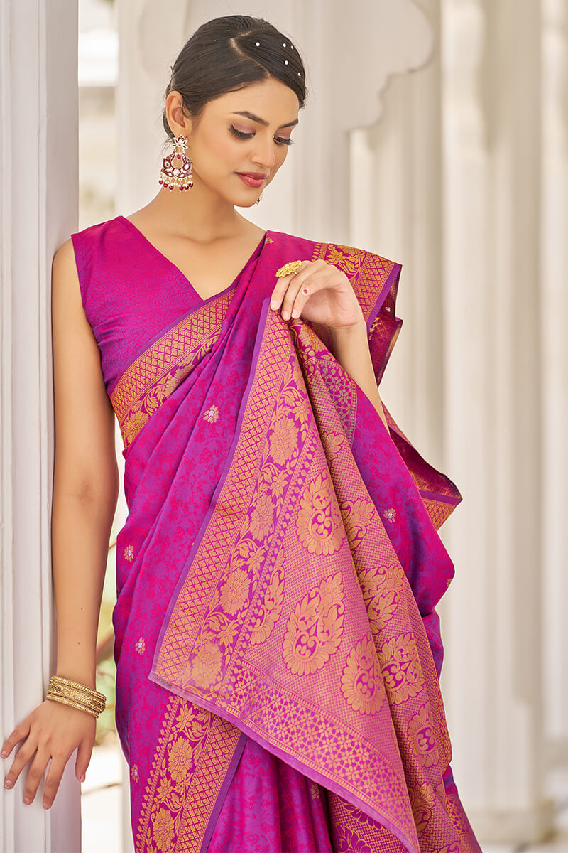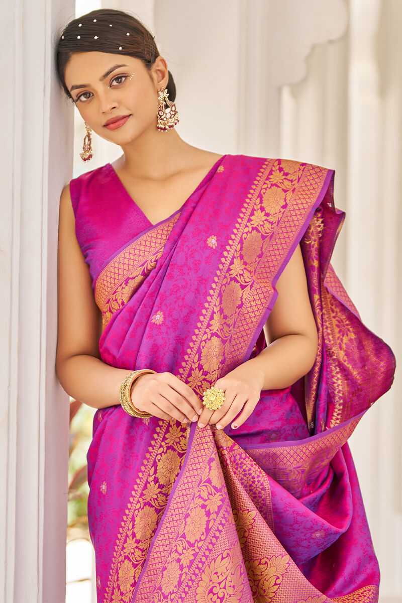 Traditional Purple Kanjivaram Silk Saree With Inspiring Blouse Piece