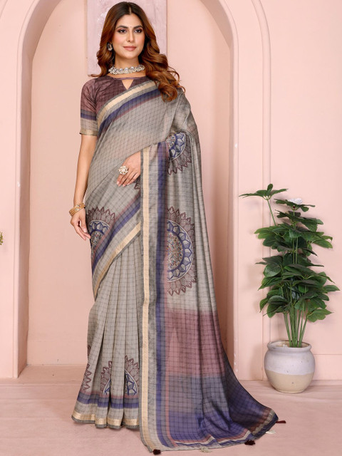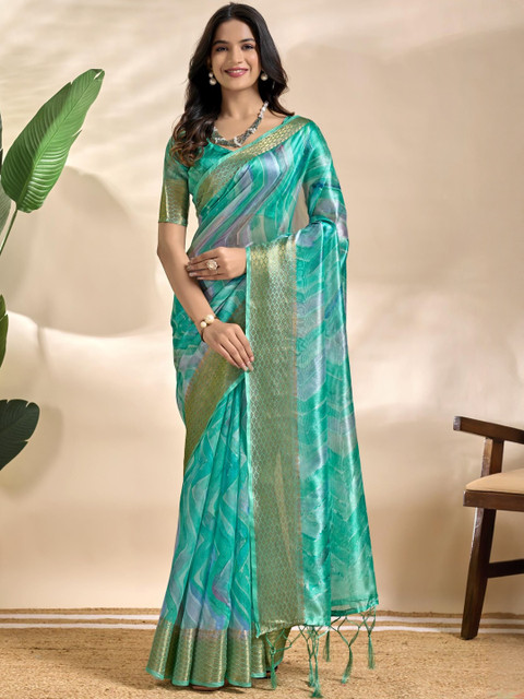 Mameraa Abstract Printed Zari Saree With Blouse Piece