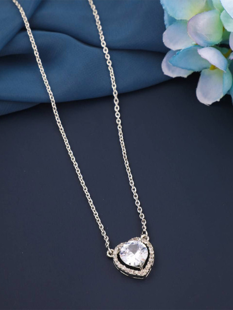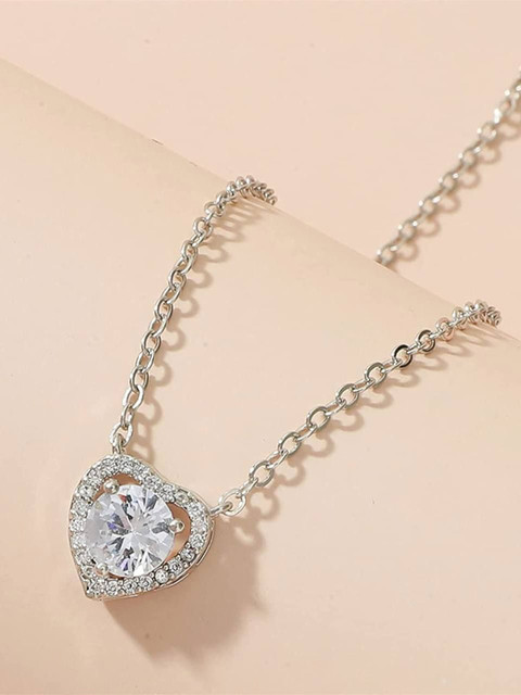 Mameraa Women Silver Plated Artificial Stones Pendant Necklace with S-Hook Closure